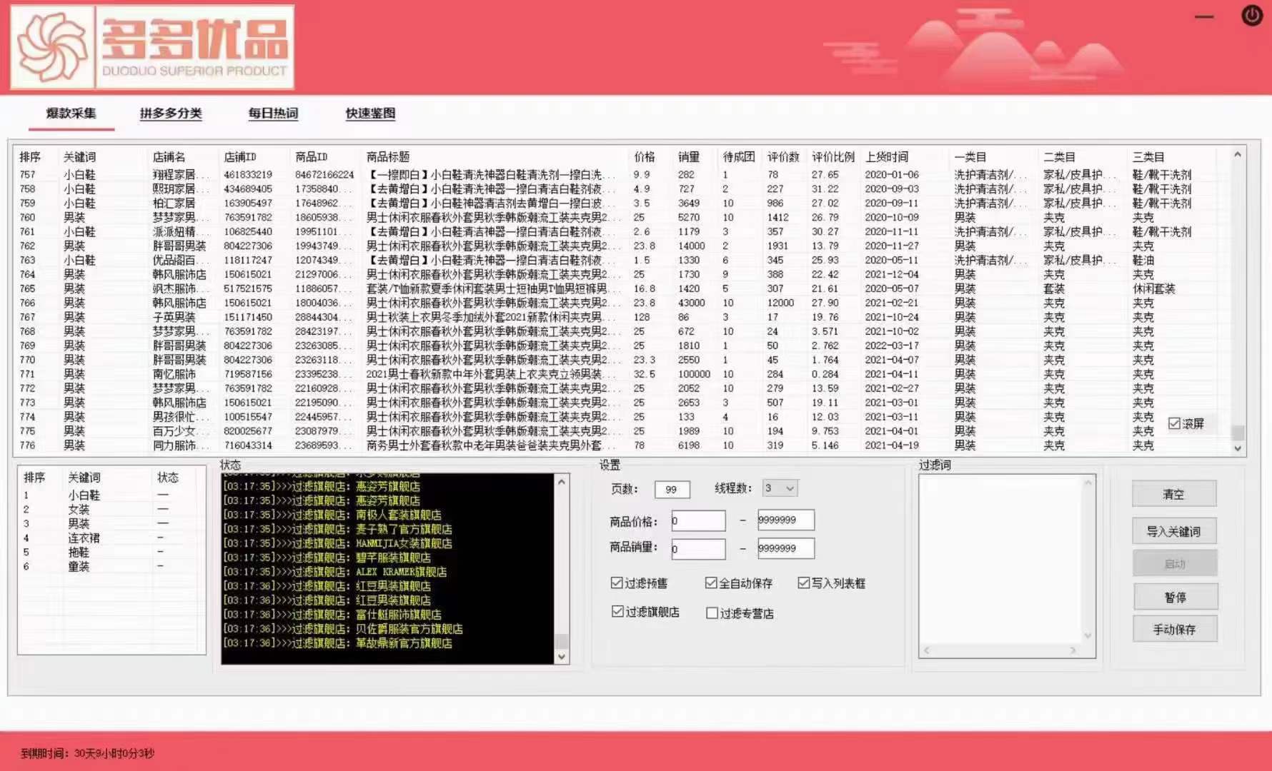 当前位置: 首页软件教程正文 多多优品 软件教程 免费 多多优品软件:主要是采集拼多多链接, 无需买手号可以直接采集,比较好用一款 新增了多多进宝采集 多多优品款新采集,实数时据,内置tk全程跑,无需再买tk和代理ip。 每日热功词能,正在拼,分类,上货时间,爆款集采功能都有,需要采功集能的看过来 声明:本站所有课程、文章,如无特殊说明或标注,均为本站原创发布。任何个人或组织,在未征得本站同意时,禁止复制、盗用、采集、发布本站内容到任何网站、书籍等各类媒体平台。 收藏 海报 链接
