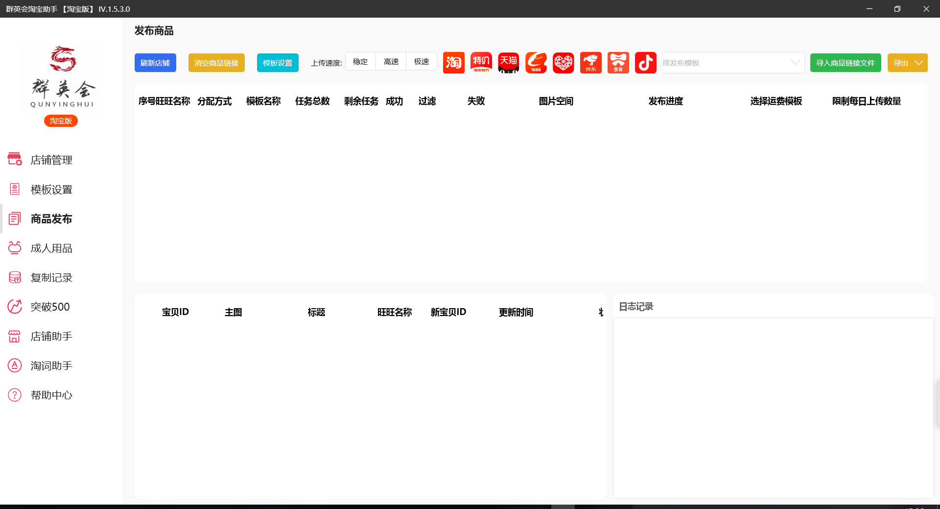 群英会发布助手,支持1.淘上淘,2.拼上淘,3.抖音上淘,4.1688上淘,5.天猫上淘,6.淘特上淘,7.京上淘 8. 京喜上淘,八种上传方式!!!