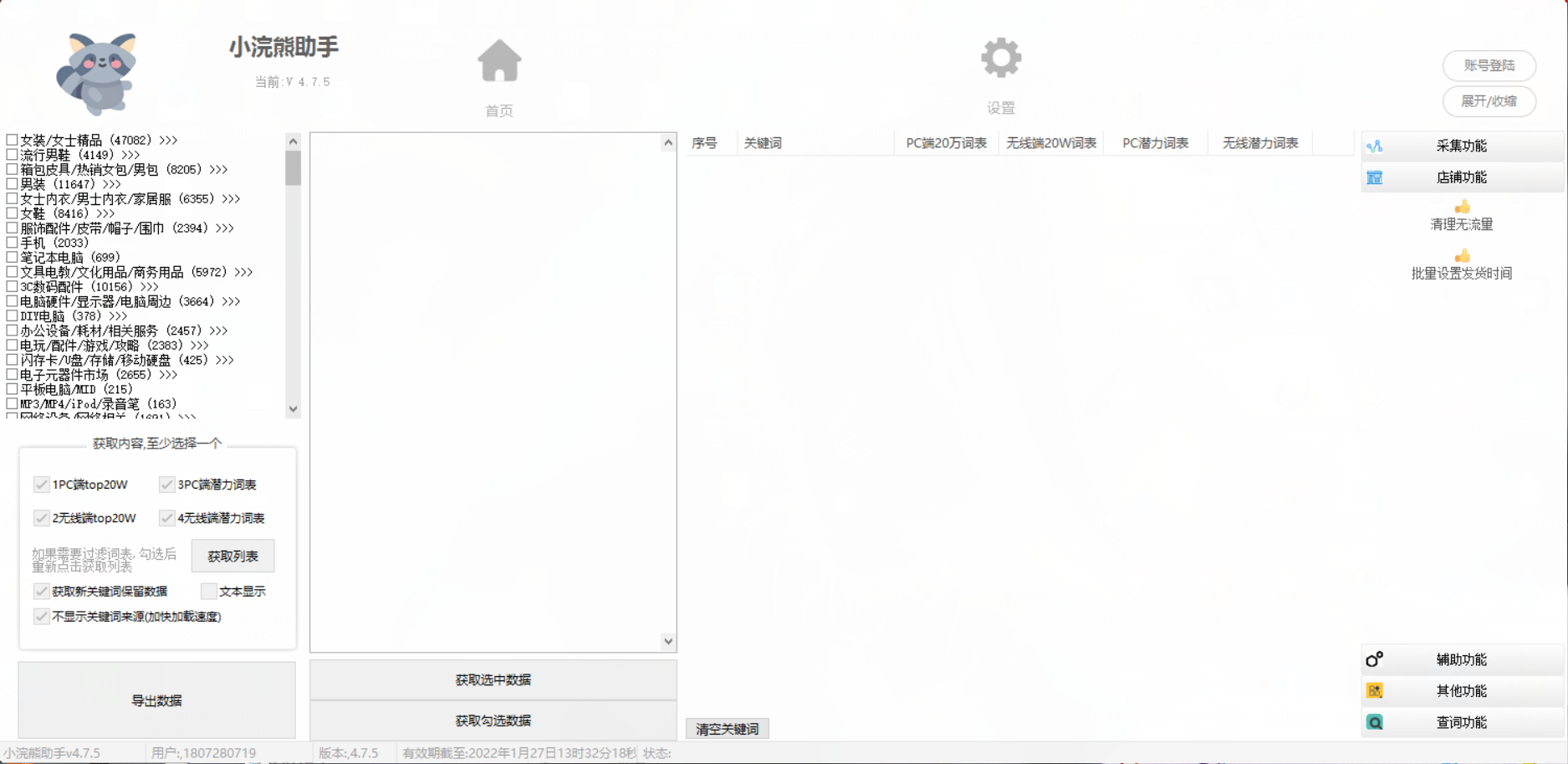 小浣熊软件:淘宝爆款采集,淘宝全店采集,蓝海监控上新,蓝海店铺分析,蓝海尾销查询,潜力款选品,top20W词库,清理无流量等相关功能
