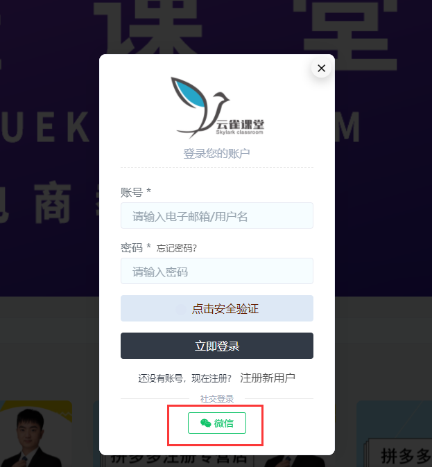 进去云雀课堂www.yunqueketang.com之后,首先注册账号。